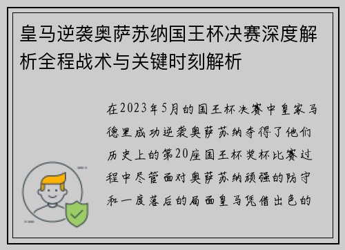 随着时间的推移,皇马更换瓦拉内的决定逐渐成为足球界热议的焦点。法国中卫瓦拉内在皇马的职业生涯中曾经是球队防线的重要一环,但最终皇马决定将其出售给曼联,标志着一段历史的结束。要理解皇马做出这一决定的原因,我们需要从多个角度进行详细分析。本文将从五大关键因素入手,全面剖析皇马为何做出如此重大的人员调整。...